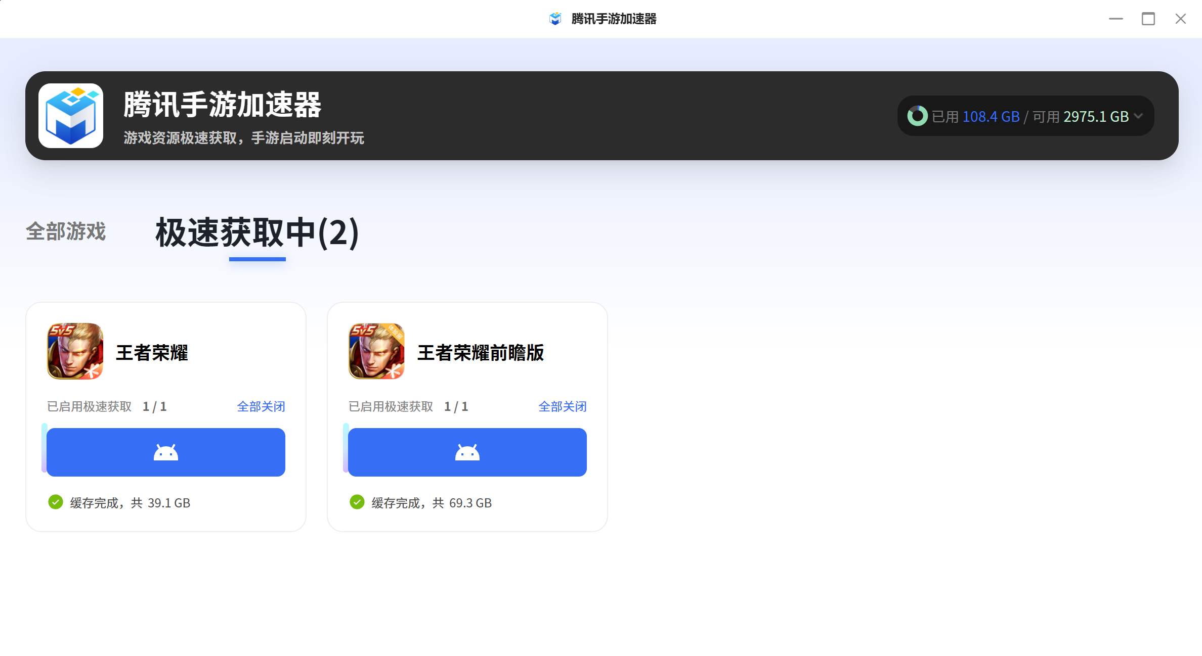 而通过腾讯手游加速器应用,通过将王者荣耀的游戏资源提前获取到本地,当游戏连入跟腾讯手游加速器相同的局域网后,便可以快速获取游戏资源,获得极速体验。实测一键开启加速后,为我获取到数十G资源。