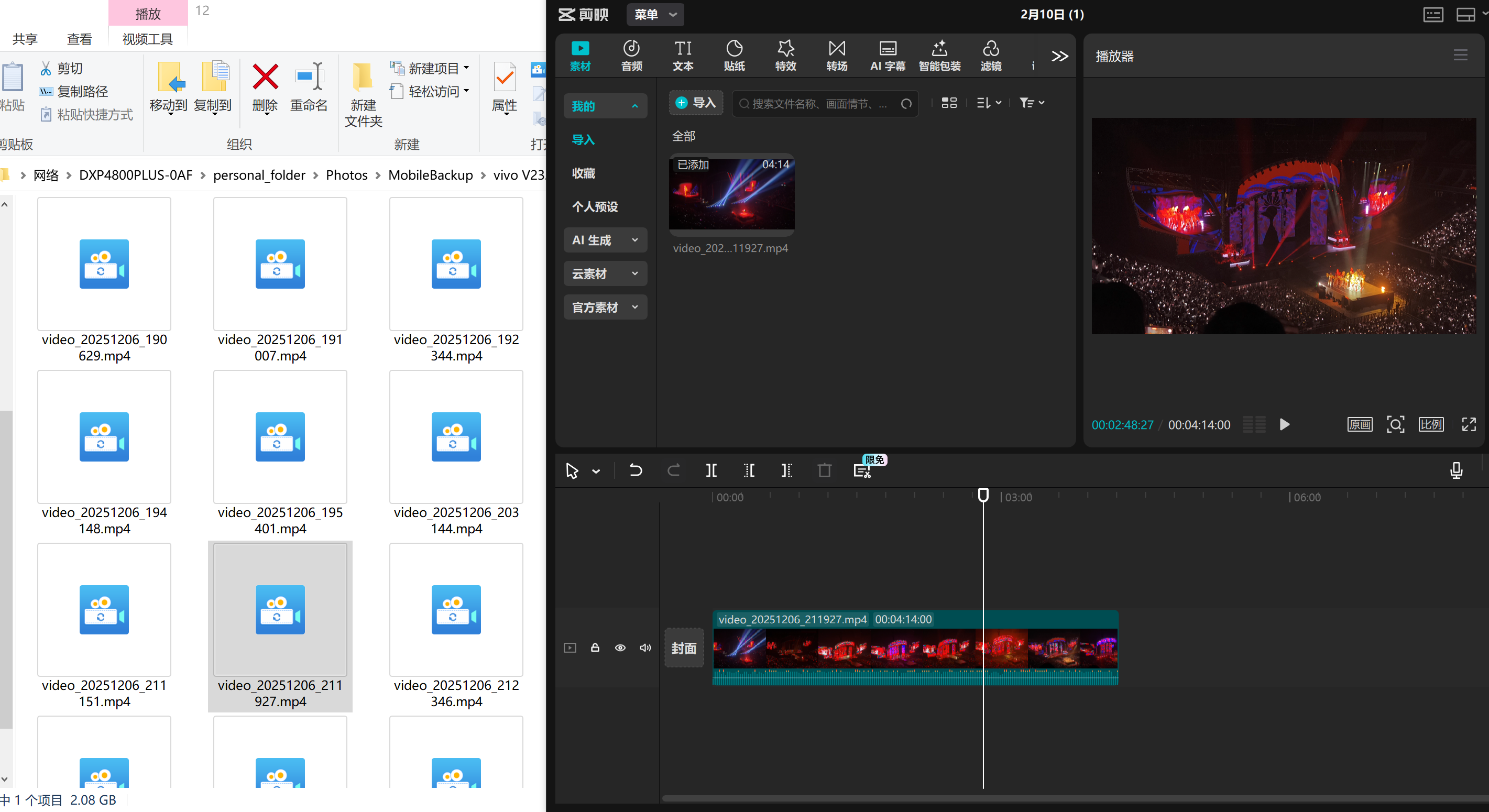 针对视频,也同样支持此种方式在线剪辑,数个GB的视频直接拉到剪映里进行处理,而后再导出到NAS保存,不占用本地主机空间,并且整个处理过程非常流程,没有卡顿感。