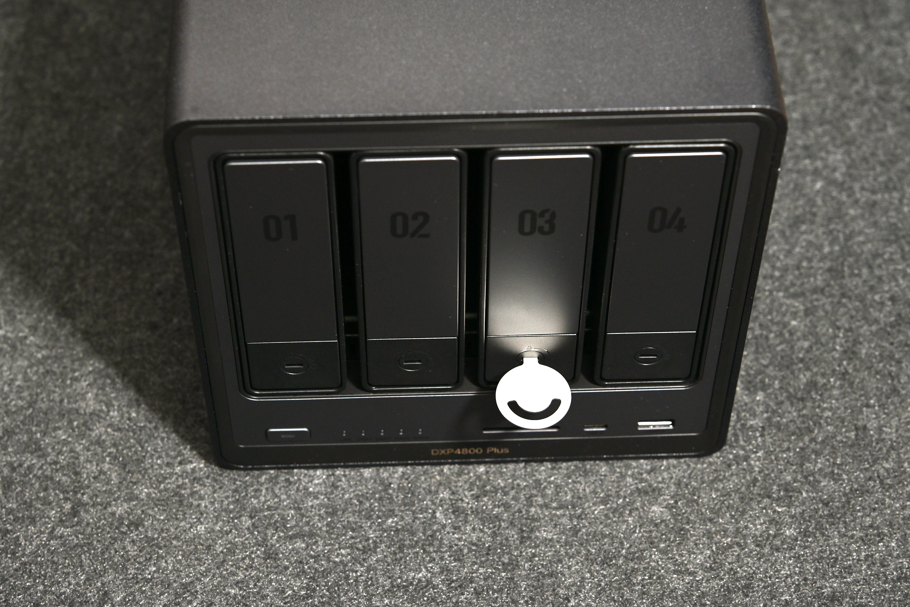 硬盘支架正面设有儿童锁,能有效锁定托架,防止因误操作抽出硬盘而导致数据丢失。硬盘的安装也十分便捷,无需借助工具:只需拉开托架背面的夹臂,放入硬盘并对准螺丝孔位,再将夹臂推回原位,即可完成固定。