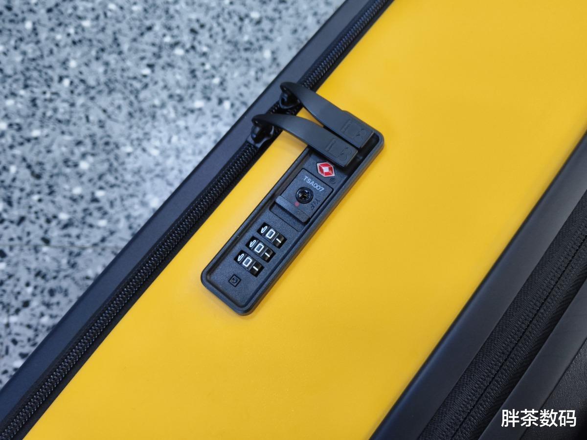 这款行李箱采用了定制YKK拉链,相当顺滑耐用,链牙之间咬合均匀而紧密,打开或闭合都很顺畅,没有任何的卡顿感。同时采用了国际海关TSA密码锁,便于安检时工作人员用专用钥匙开箱检查,避免被暴力开箱。