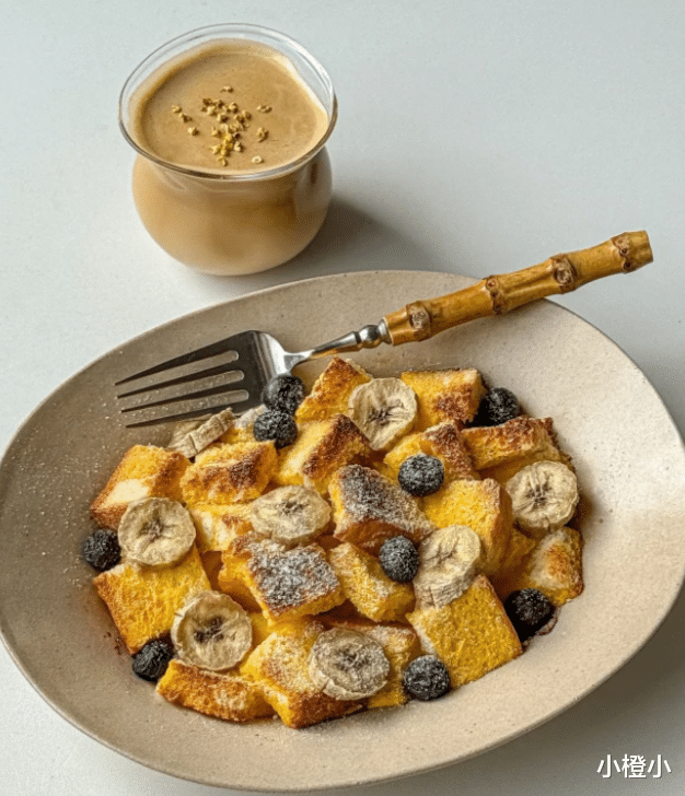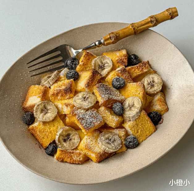 出炉后稍晾2-3分钟,热吃口感最佳!外层酥香带点焦糖感,内里湿润绵软如法式吐司与布丁的结合体,奶香蛋香交织,甜度克制却回味悠长。喜欢更丰富的,可以撒糖粉、淋枫糖浆、加一勺香草冰淇淋,瞬间升级成brunch级甜品!
