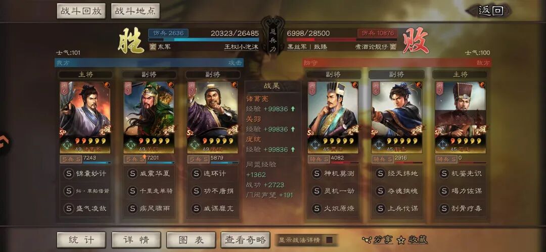 加点建议:SP诸葛亮 > 关羽 > 庞统(速度链),关羽全武力,其余主智力。
