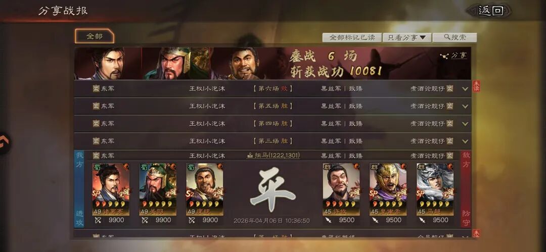 老关羽的发挥作用:高额武力加成+千里的洞察,确保准备战法稳定释放,第四回合武力可破600。