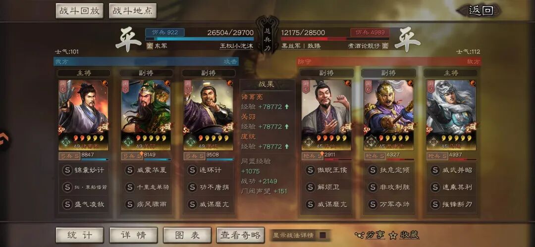 汉焰长明剧本里,看到盟友有人在玩SP诸葛亮+关羽+庞统,通过兵种提升,让老关羽变弓兵S,这样两个准备战法的蜀国武将都受到SP诸葛的判定。平民玩家可以尝试,这是一套集合高爆发、强联动的蜀国黑科技阵容,核心思路为“控制+增伤+连环爆发”,适合中慢速对抗环境。