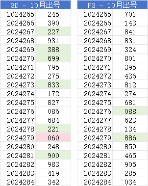 进入10月以来,排列三仅仅开出过2次对子,如下: