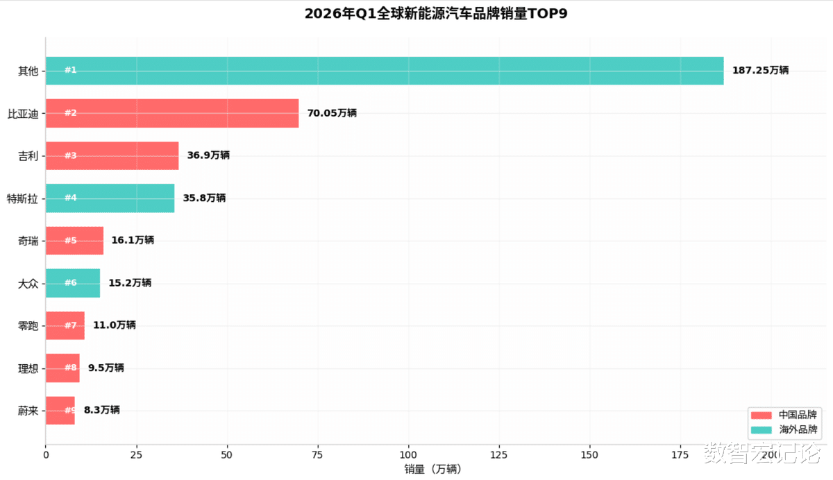 (4)奇瑞汽车:一季度新能源销量16.1万辆,全球排名前列,核心依托海外市场发力,一季度总销量60.17万辆,海外出口39.33万辆,占比超六成,同比暴涨53.9%,是中国车企全球化最成功的典范,新能源车型在海外新兴市场认可度持续提升。