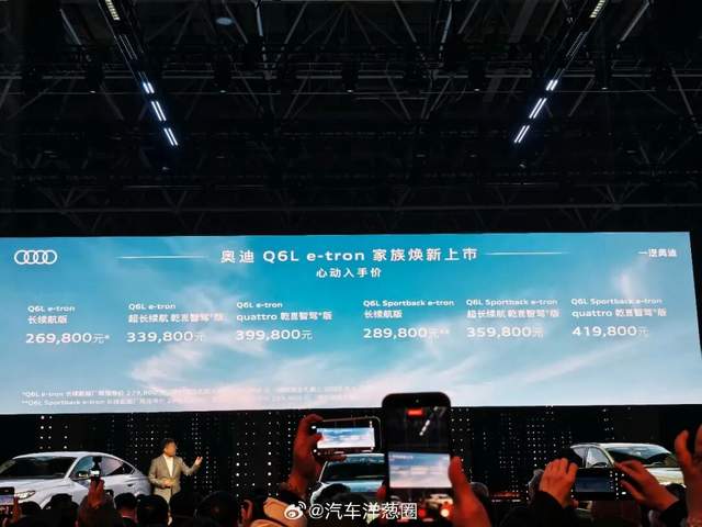 按照一汽奥迪销售有限责任公司执行副总经理郭永锋在4月10日智电旗舰新品发布会上的介绍,Q6L e-tron由原来的两个版型调整为三个版型,其中新增加的长续航版车型将车系起售价拉低到26.98万元(限时价格,原价27.98万元),比2025年8月上市时的车系起售价低7.9万元。