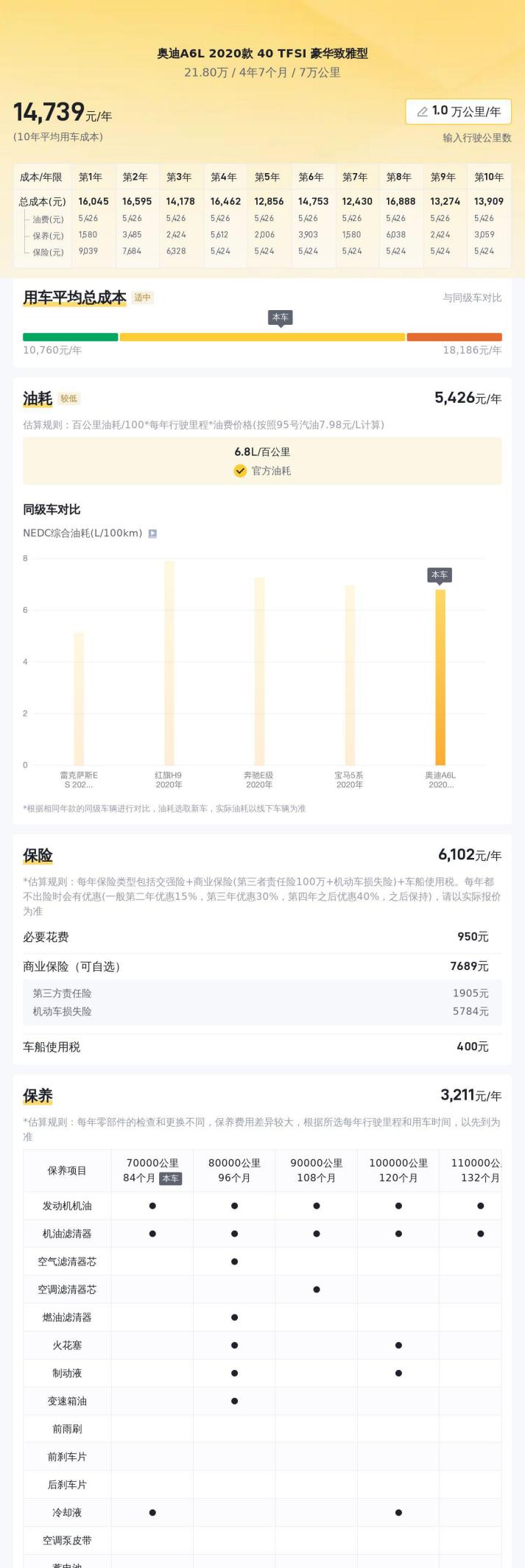 用车成本方面,除了购车费用外,还需要考虑燃油费、保养费、保险费等。A6L的保养费用相对较高,这也是豪华品牌的通病。燃油方面,2.0T发动机的油耗表现中规中矩,百公里综合油耗在8-10L左右。保险费用则根据具体的险种和保额而定。