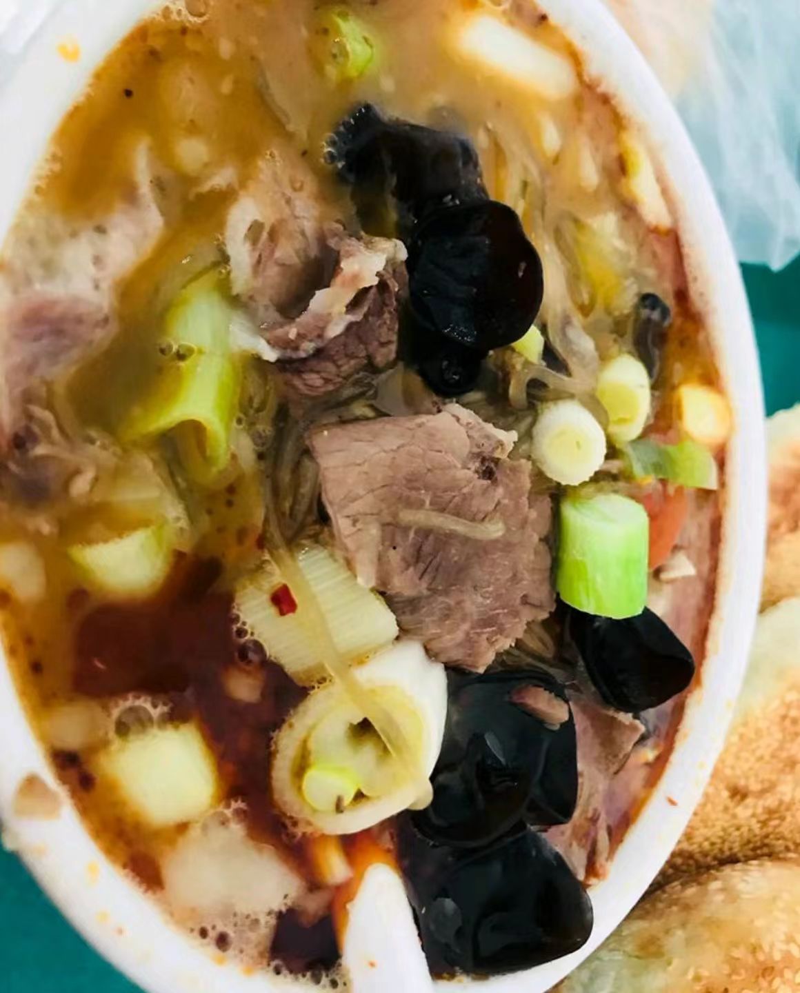 4. 烩羊肉 :烩羊肉是登封的特色名吃,汤汁以羊腿骨和羊脊骨清水熬制而成,乳白如玉,香气四溢。选用豫东小山羊,肉质鲜嫩无膻味,炖煮至软烂,入口即化。搭配外酥里嫩的芝麻烧饼,将烧饼掰碎泡入汤中,美味加倍。