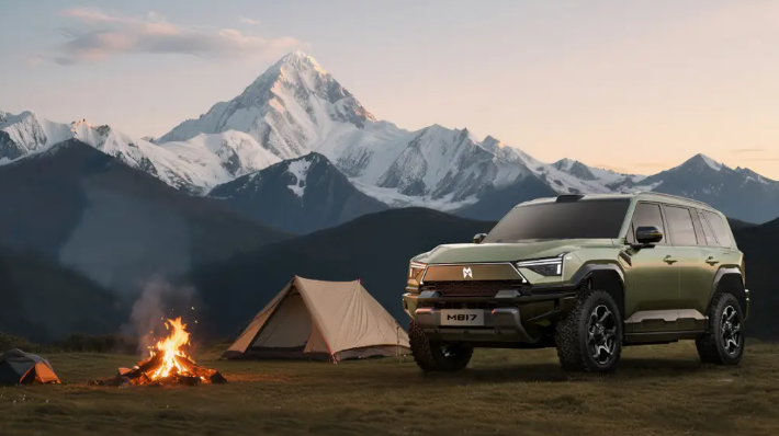 现在聚焦该车在造型与外观方面,这次猛士M817也可谓是煞费苦心,请来了专业的设计师进行操刀,在越野元素中还加入了不少科技元素。例如整车搭载电动踏板,电吸门,无感解闭锁。在内饰方面,猛士M817的车内座舱也是显得相当科技豪华,中控操作台简约整洁,车内座椅材质为nappa真皮包裹,配备座椅通风,加热,按摩的全功能。第一排座椅可放倒,与第二排座椅平面连接形成一张1米7的双人床,在车内即可享受休息座舱。车内拥有丹拿18扬声器音响,配备256色氛围灯,整体内饰氛围与外观的硬盘属性截然不同。