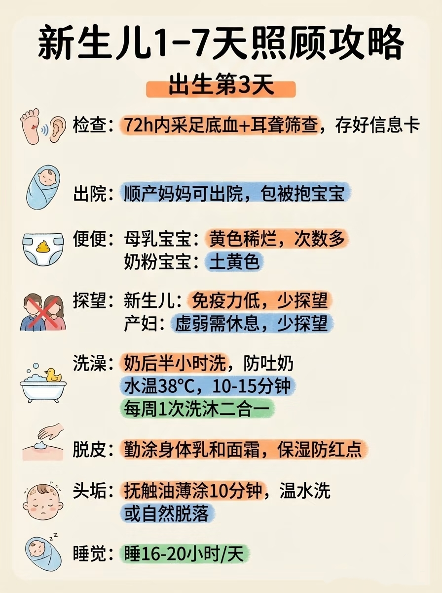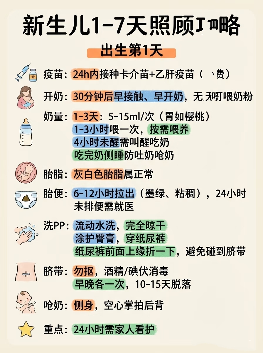 别慌!我们为你整理了一份“新生儿1-7天超实用照顾攻略”。我们不谈那些吓人的医学术语,就用最通俗的大白话,陪你一起稳稳度过这第一周。