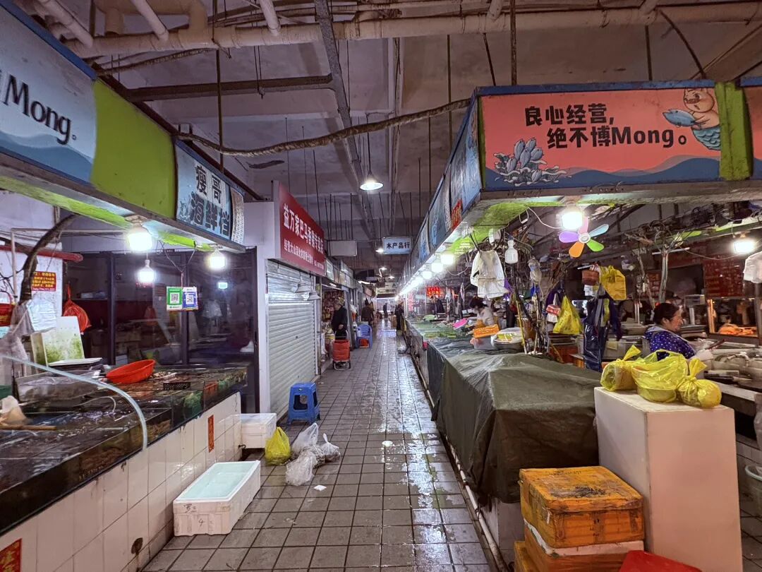 「富人区」的新住户,更青睐精品超市和线上订购,对菜市场依赖极低。市场的「一站式购齐」优势也正在消失,水果区搬空、水产区空无一人时,我为什么要专门跑一趟只买两样菜呢?
