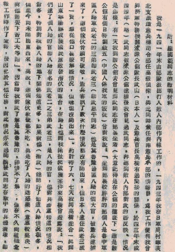 图|关于武思平同志入狱和脱险情况的证明(文/罗国范1955.2.23)