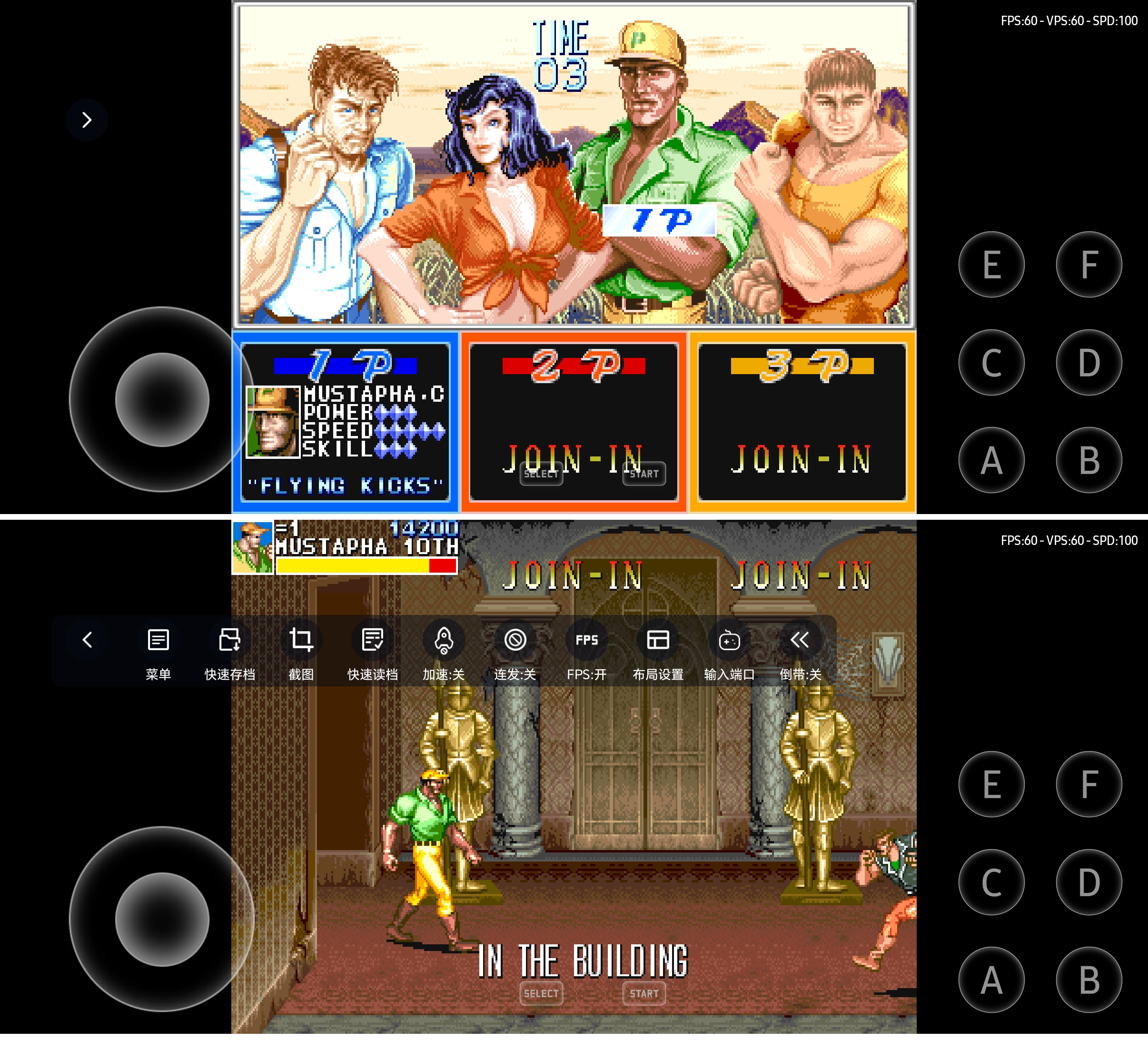 启动有小广告?用之前分享的李跳跳自动跳过即可,操控是默认摇杆手柄,屏幕侧边藏着快速存档、截图、加速等实用功能,游戏菜单里还能自定义按键、画面比例,甚至有金手指(无敌、无限生命、选关卡)和组合键设置,一键大招爽到飞起!