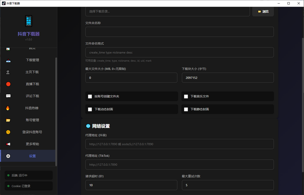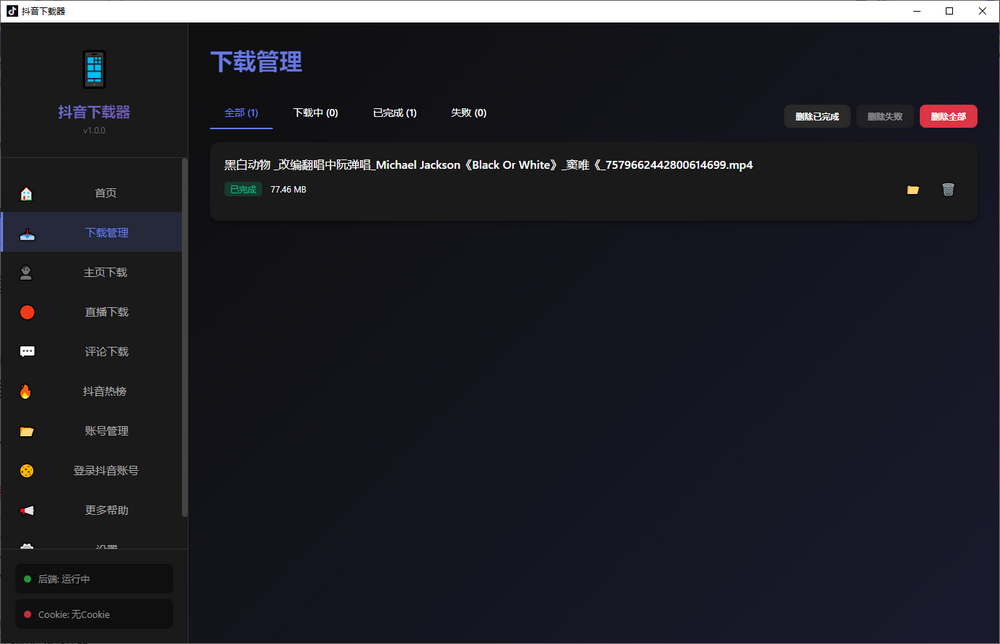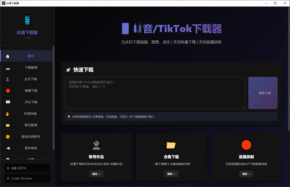 要是想批量下载的话,只需要一行放一个下载链接即可。除此之外,还支持下载封面图、音乐等功能。