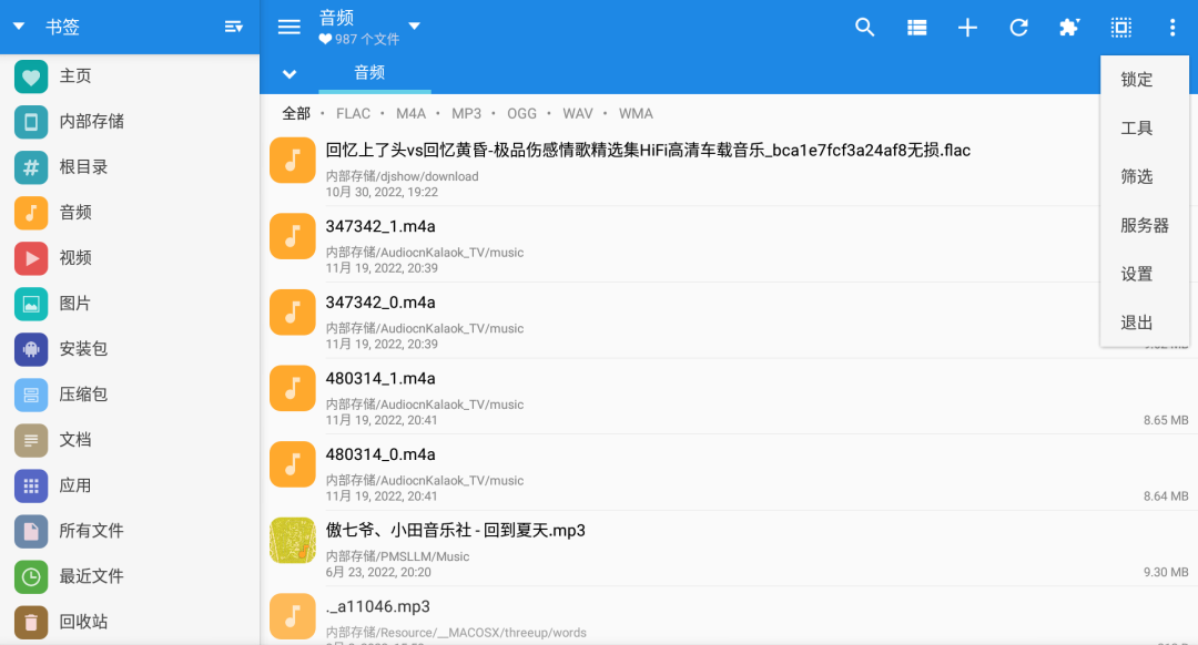 兼容性绝了,安卓手机和 TV 盒子都能用,遥控器操作也丝滑适配,看电视时管理文件超方便。左侧菜单分类清晰,音频、安装包、图片、文档等一键直达,加载速度飞快,不用翻来翻去。