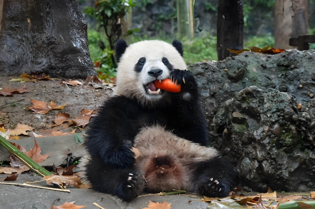 第一位,德瑞,江湖人称“宅宅”。听这昵称就知道,这小家伙主打一个“宅系显眼包”,不过咱可得澄清一下,人家可不是真的佛系安静,小时候那也是个能把院子霍霍得寸草不生的调皮蛋,饲养员都无奈调侃,它疯跑起来,地面踩得连草都长不出来 只不过长大之后稍微收敛了点性子,不爱瞎溜达,就喜欢窝在角落里啃竹子、睡大觉,活成了当代年轻人最羡慕的“摆烂天花板”。别看它宅,颜值可不输,一身黑白绒毛蓬松得像棉花糖,还是碧峰峡少有的“白皮熊猫”,圆圆的脑袋略带小秃,配上标志性的“熊猫墨镜”,自带一种“与世无争”的憨态,颇有“采菊东篱下,悠然见南山”的慵懒感,萌得人心都化了。