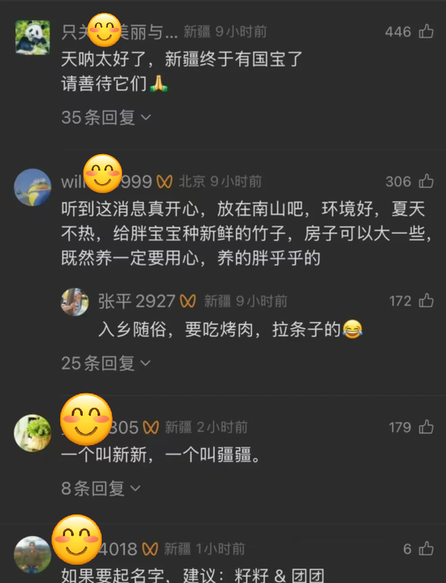 消息一出,新疆网友直接集体沸腾,评论区瞬间被刷屏,满屏都是欢喜与期待:“太好了,在乌市就能看到熊猫,不用再跑成都啦!”“醒来刷到这消息,真开心,过年又多了一个好去处”“养好啊!最好是那种肥肥壮壮的”,还有网友现场为大熊猫起名,热情直接拉满,这份不加掩饰的欢喜,隔着屏幕都能感受到❤️