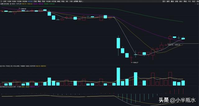 说回证券板块,证券板块这两天的反弹明显偏弱,今天板块内主力资金净流出8个多亿,今天最高点也才到周二的开盘价附近,30分钟出现高9后逐渐走弱,就看明天30分钟macd指标运行到0轴附近能不能稳住了。
