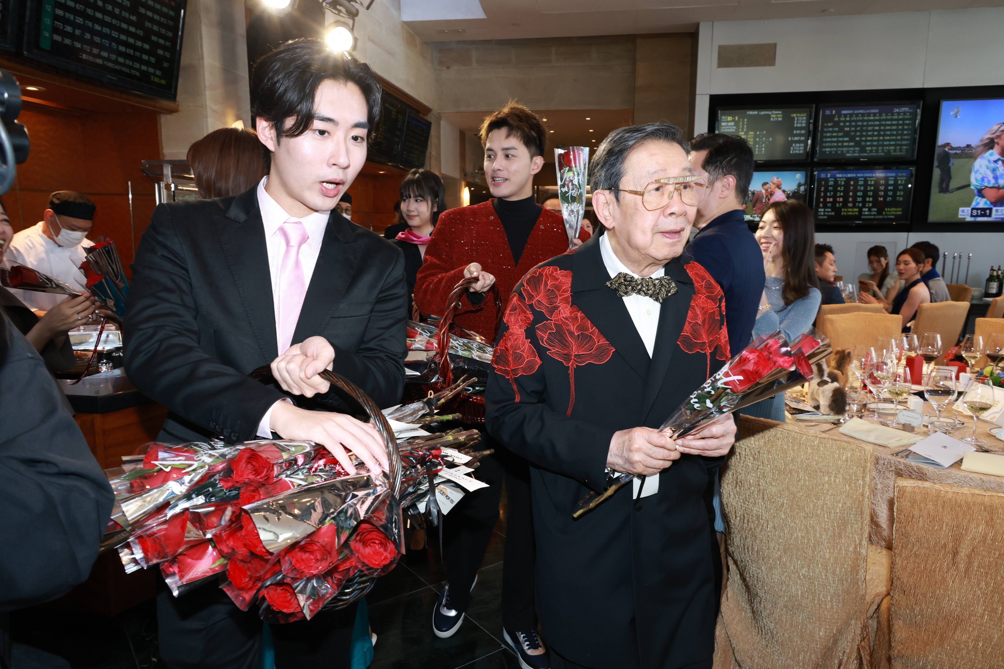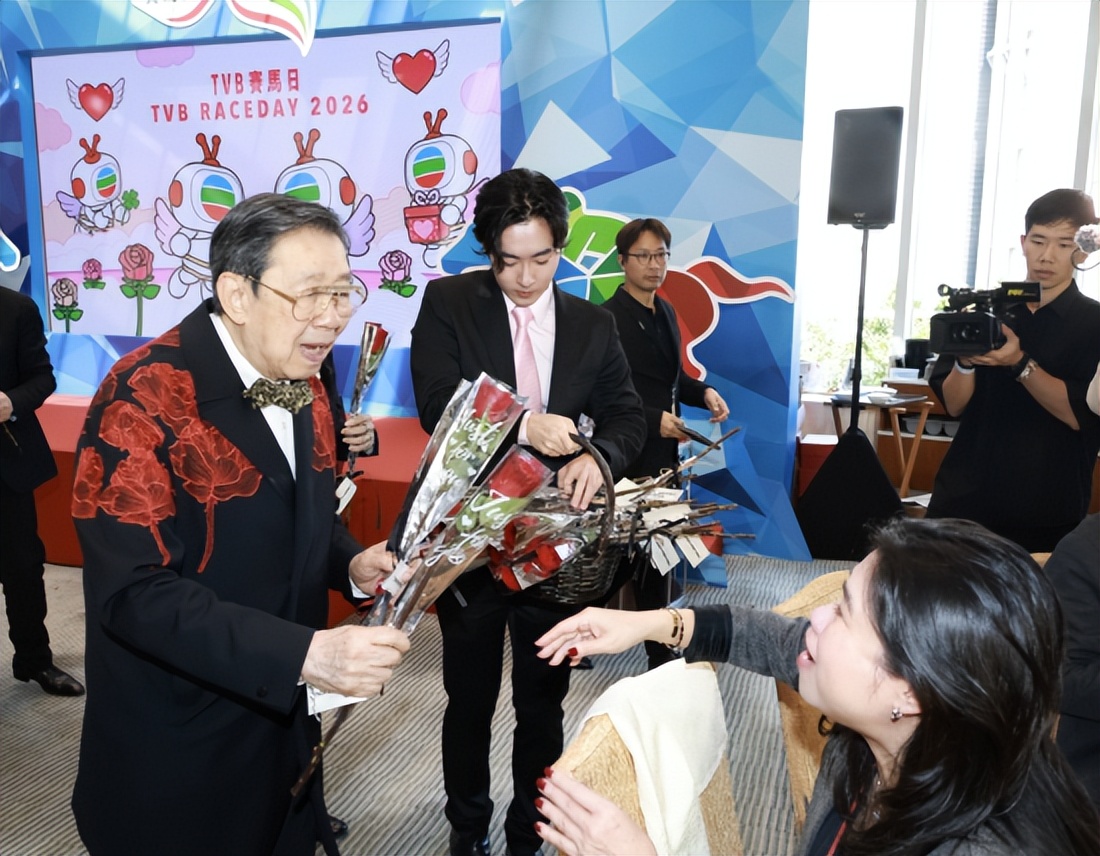 今日“TVB 赛马日”活动撞正情人节,大会特意安排连串应节环节,当中最大惊喜莫过于由胡枫(修哥)压轴登场!现年已94岁的修哥活力十足,竟惊喜化身爱神“修”比特,手持玫瑰花束现身,向在场一众嘉宾及艺人送上“爱的玫瑰”,大派情人节祝福。修哥可爱又精灵的造型一出场即引来全场起哄,不少艺人争相与“修”比特合照,场面温馨又搞笑,成功为紧张的赛马日注入满满的甜蜜气氛。