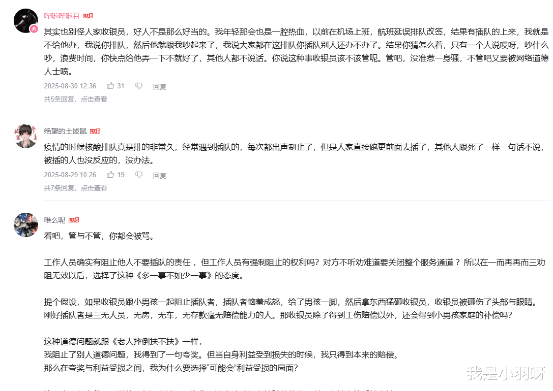 现在好多大人,遇到这种插队之类的事儿,都选择睁一只眼闭一只眼,多一事不如少一事。
