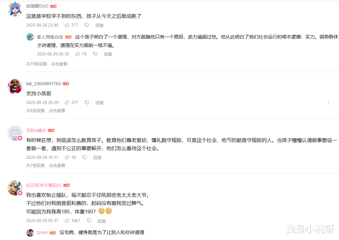 我们心里都盼着身边能多些像这孩子一样有正义感的人,可又担心他们在现实里被那些蛮不讲理的人欺负,毕竟这正义感在那些戾气面前,真的太容易受伤了。