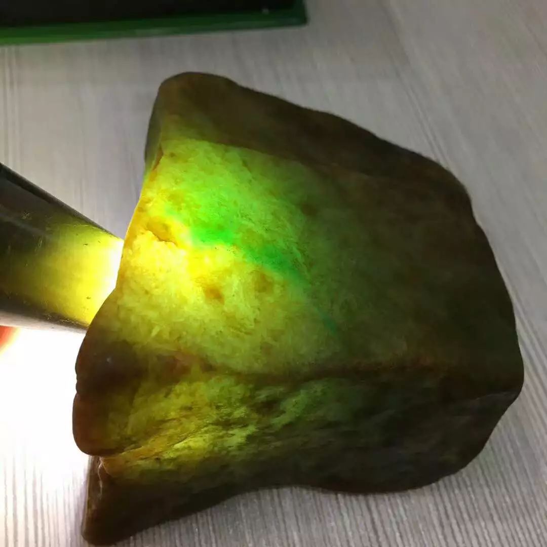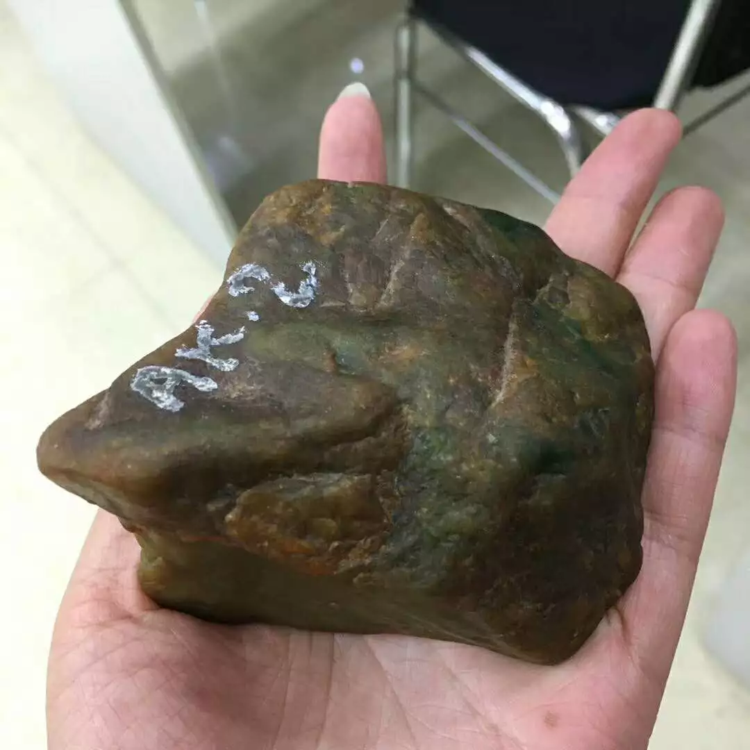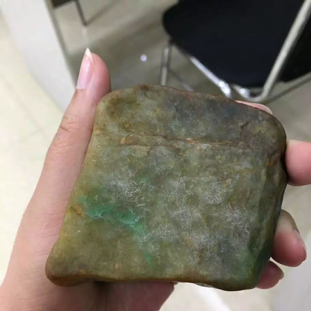 整块原石有一条阳绿色带环绕,是雕刻艺术家的至爱,是一位越南美女花3000买下的,她约着闺蜜一同买下这块大马坎水石,还是在夜市小地摊里看到的。