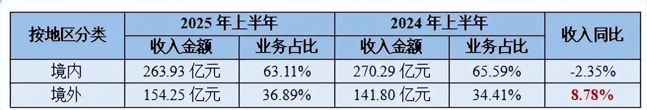 仅看2025年上半年,海康威视海外营收增加13亿元左右,较去年同期增长8.78%,业务占比提高了2.48个百分点,来到36.89%。