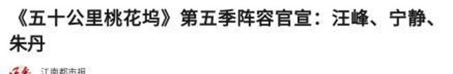 3.江南都市报:《《五十公里桃花坞》第五季阵容官宣:汪峰、宁静、朱丹》2025-5-19