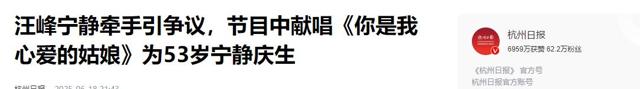 1.杭州日报:《汪峰宁静牵手引争议,节目中献唱《你是我心爱的姑娘》为53岁宁静庆生》2025-06-18