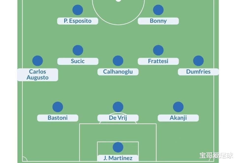 门将位置上,国米本赛季已经逐步让何塞普马丁内斯上位,与索默形成轮换,基本上是强敌硬战上索默,一般比赛上马丁内斯,而马丁内斯在几次出场中表现也是令人放心。德弗莱顶替阿切尔比和奥古斯托顶替迪马尔科是国米的常规轮换,考虑到阿切尔比的年龄和迪马尔科在国家队比赛打满了180分钟,这两处轮换尤其重要。巴斯托尼、阿坎吉和邓弗里斯都没有轮换,这3人都是各自国家队的绝对主力,特别是阿坎吉和邓弗里斯都打满了180分钟,没有轮换,还是因为他们的替补(比塞克和路易斯恩里克)不那么令人放心。