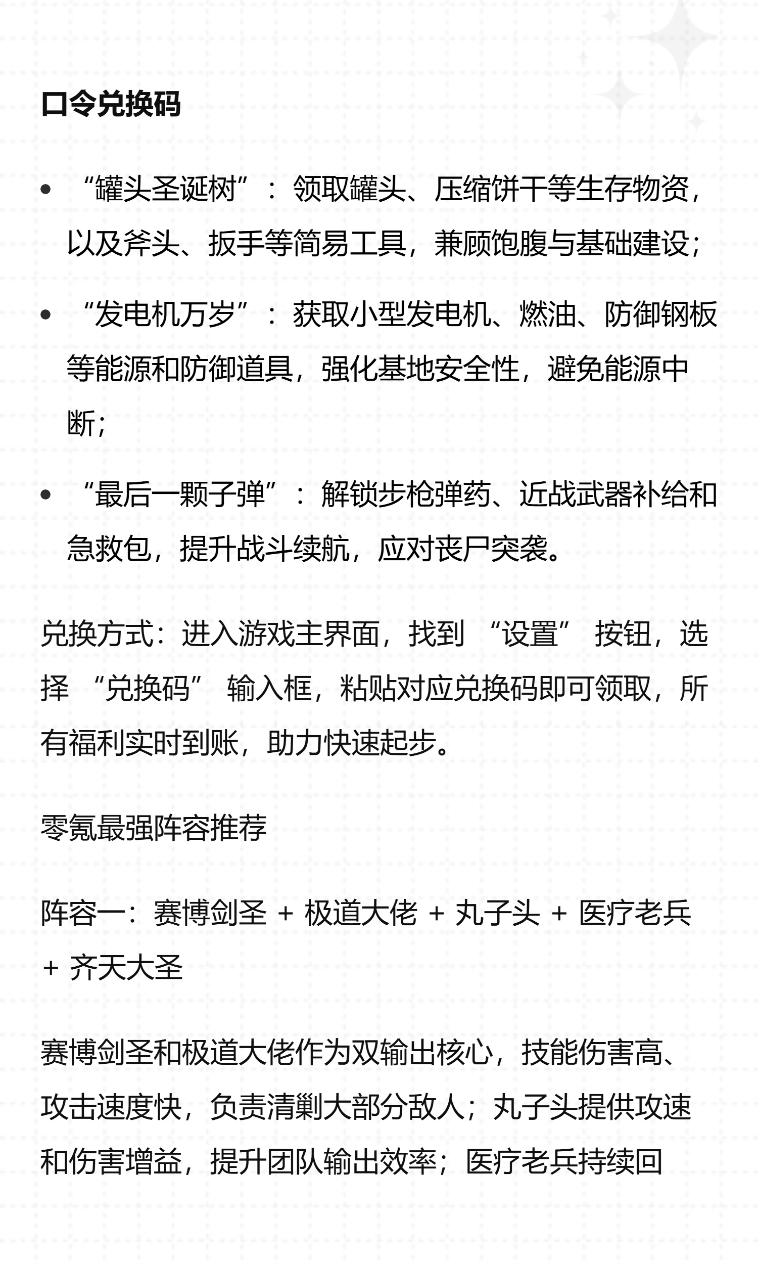 在末日题材手游生存33天中,零氪玩家无需氪金也能站稳脚跟,甚至冲榜新区!核心秘诀在于用好福利兑换码、搭配强势阵容、高效获取资源,这份全方位攻略帮你少走弯路,顺利度过 33 天生存危机。