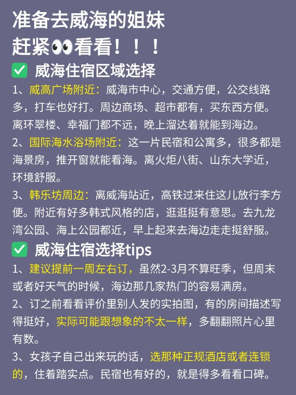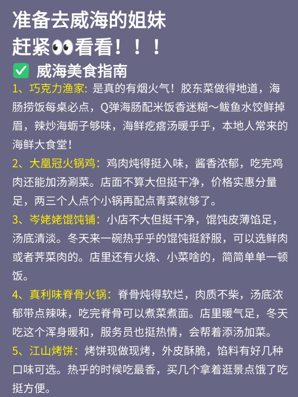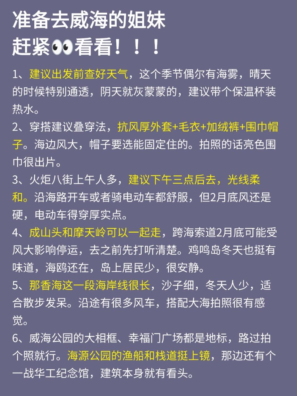 ✅ 第二天:早上去幸福门打卡,登高能看到威海全景~接着步行到威海公园,和“大相框”雕塑合影📷,下午逛悦海公园,彩色小房子和灯塔很出片,坐在海边吹吹风,感觉时间都慢下来了⏳