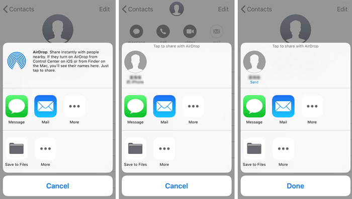 步骤 3:点击“共享联系人”,选择“AirDrop”,然后选择您的Mac 。