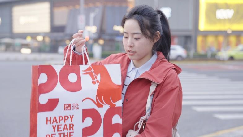 心意有时需要一点独特的巧思。一位女生从包里小心地取出一个礼袋,里面是一件在优衣库特别定制的常沙娜马年限定系列UTme!,送给许久未见的好友。她没有选择随处可见的常规礼品,而是在优衣库找到了一款融合了传统艺术灵感、以“马”为寓意的限定设计。她说:“想过送点别致的、不会撞款的东西,这个图案融入了传统文化,过年能穿,平时也能穿。”