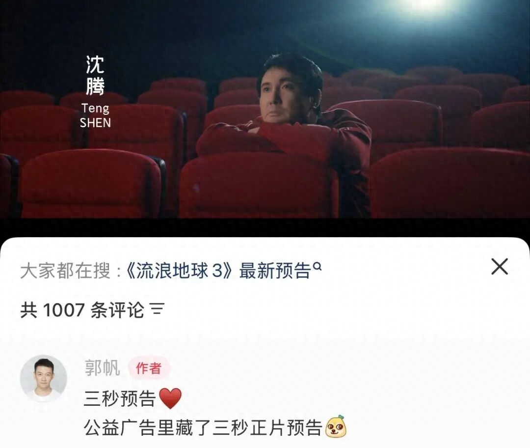 2月21日,导演郭帆在个人社交账号发布了一则观影礼仪公益广告,其中暗藏了3秒《流浪地球3》正片镜头。