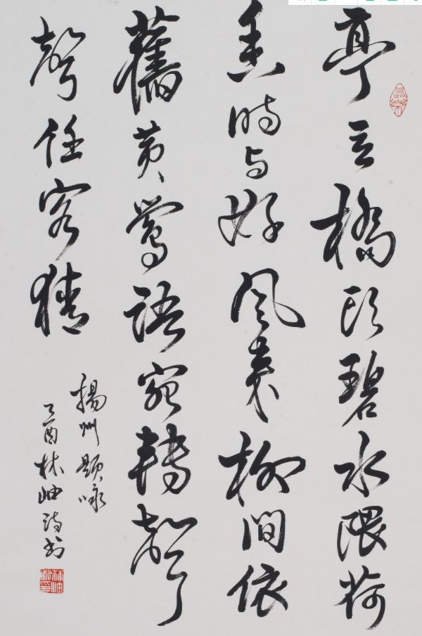 尤其是以书法国展为代表的全国性书法大展,女性书家参与者人数倍增,许多在形式上有新意,在结字、构图方面有创造性的作品,体现出当今女性书法创作紧紧跟上了时代的步伐。其中,对于墨法丰富性的探索,对于章法的创新,以及对于空间、张力、对比、组合等形式与形态的自觉追求,这些新的探索与当下基础训练的严格性相调和,保证了一批有一批精品力作的诞生。它们的出现,也为书法与当代艺术的对话打开了新的通途。