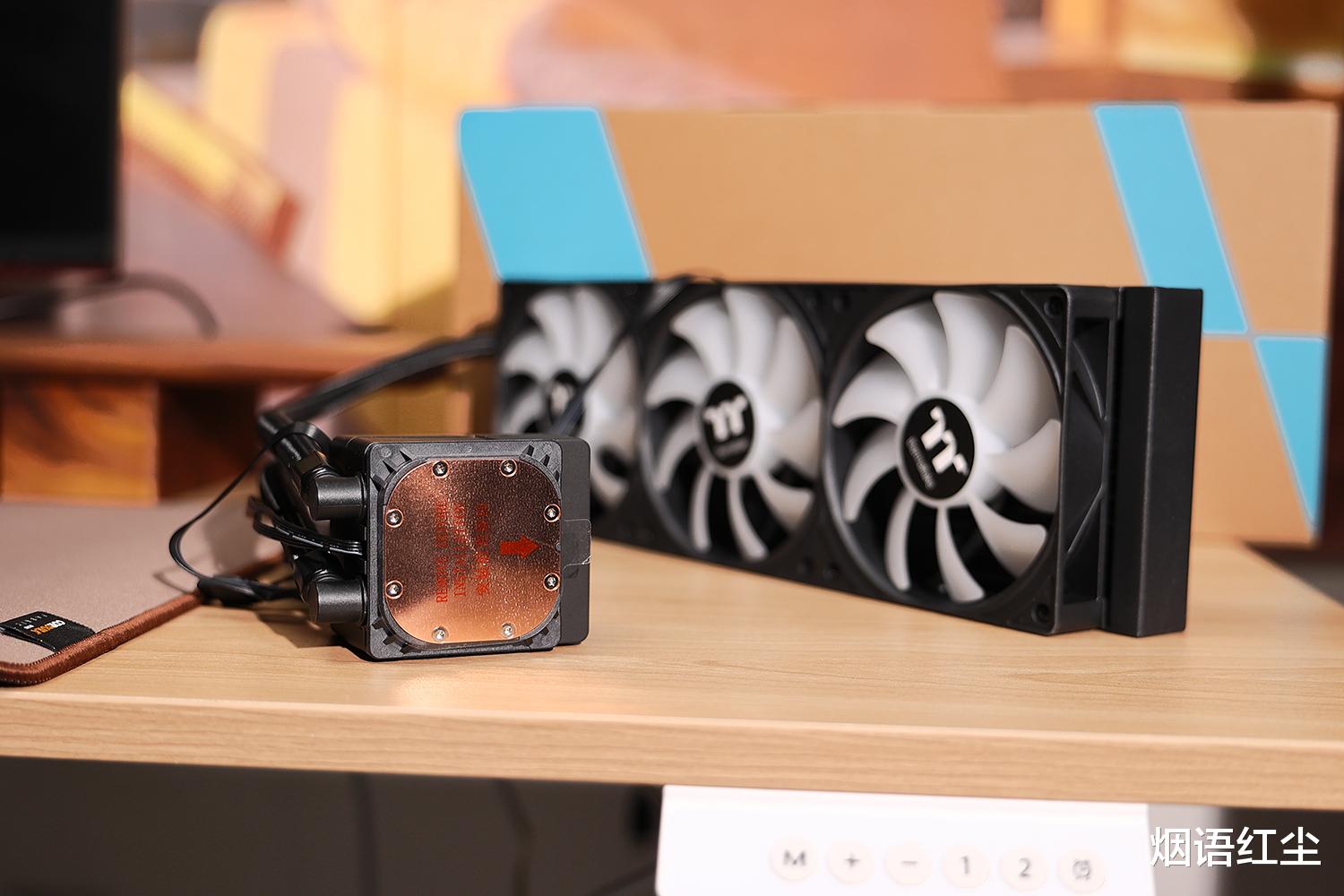 水冷散热器我选购的是Tt钢影木语360一体式CPU水冷散热器,其最引人注目的特点就是其水冷头部的木质装饰。在清一色金属与塑料的散热器市场中,木质元素的加入带来了一丝自然与温润,让冰冷的科技产品拥有了独特的生命力。这种设计不仅美观,更体现了曜越对产品美学的深刻思考,科技不应该只有冷冰冰的金属感,还可以有自然的温度。