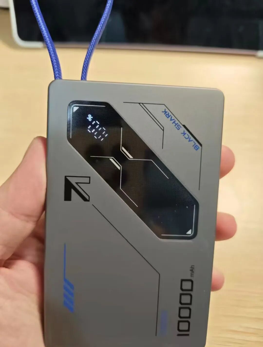 再结合用户晒单聊下产品,这是今年6月黑鲨出的10000mAh超薄磁吸充电宝,外观是机甲电竞风格,额定容量5800mAh,支持22.5W输出功率和18W自充功率,正面有数字显示屏可以显示剩余电量。