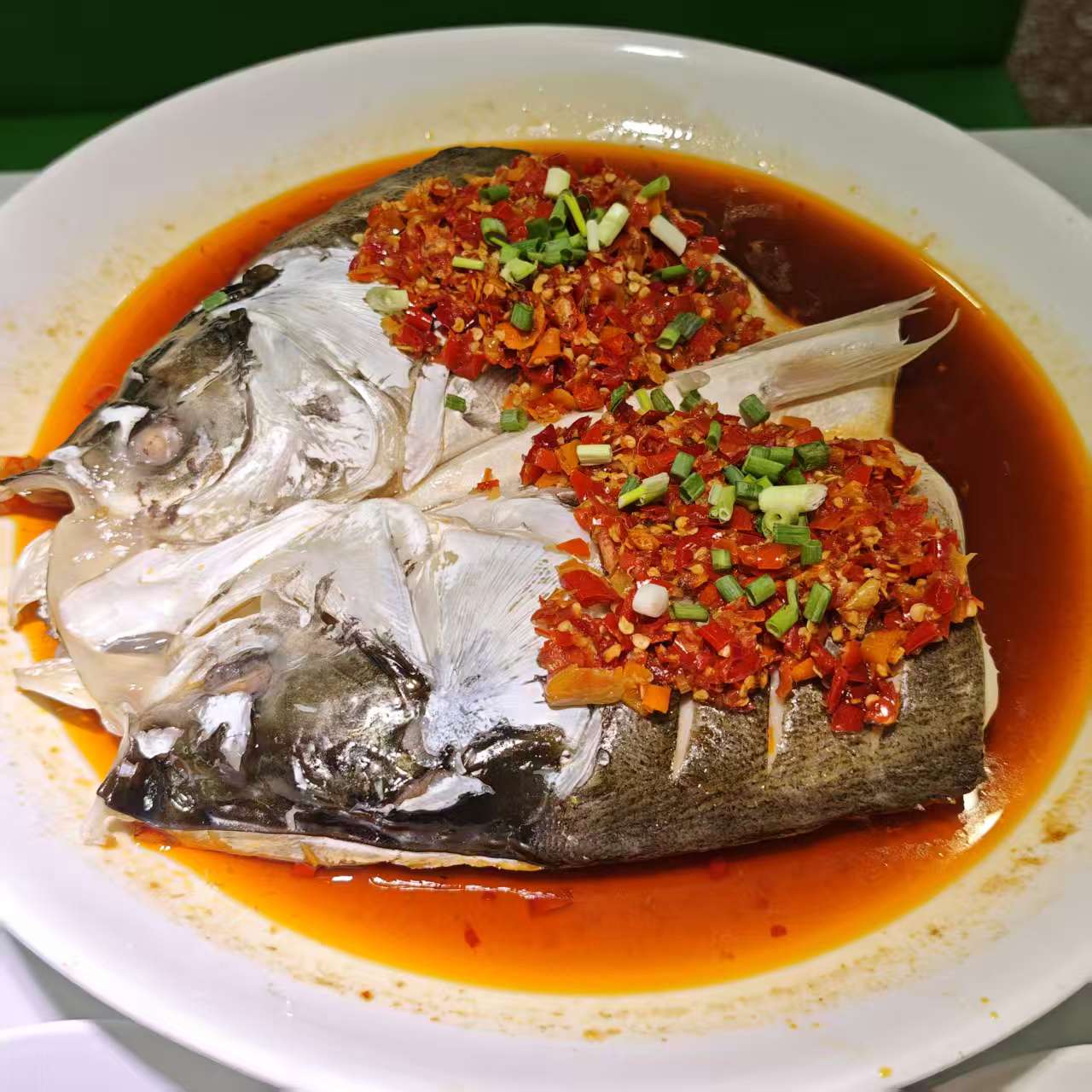 剁椒鱼头作为湘菜的经典代表,一上桌便能吸引所有人的目光。鳙鱼鱼头个大肉厚,新鲜肥嫩,上面铺满了一层厚厚的剁椒。剁椒经过腌制,咸香中带着浓郁的辣味。蒸制的过程中,鱼头的鲜味被牢牢锁住,剁椒的味道也充分渗入鱼肉之中。吃的时候,鱼肉鲜嫩爽滑,剁椒的辣味在舌尖散开,让人直呼过瘾。