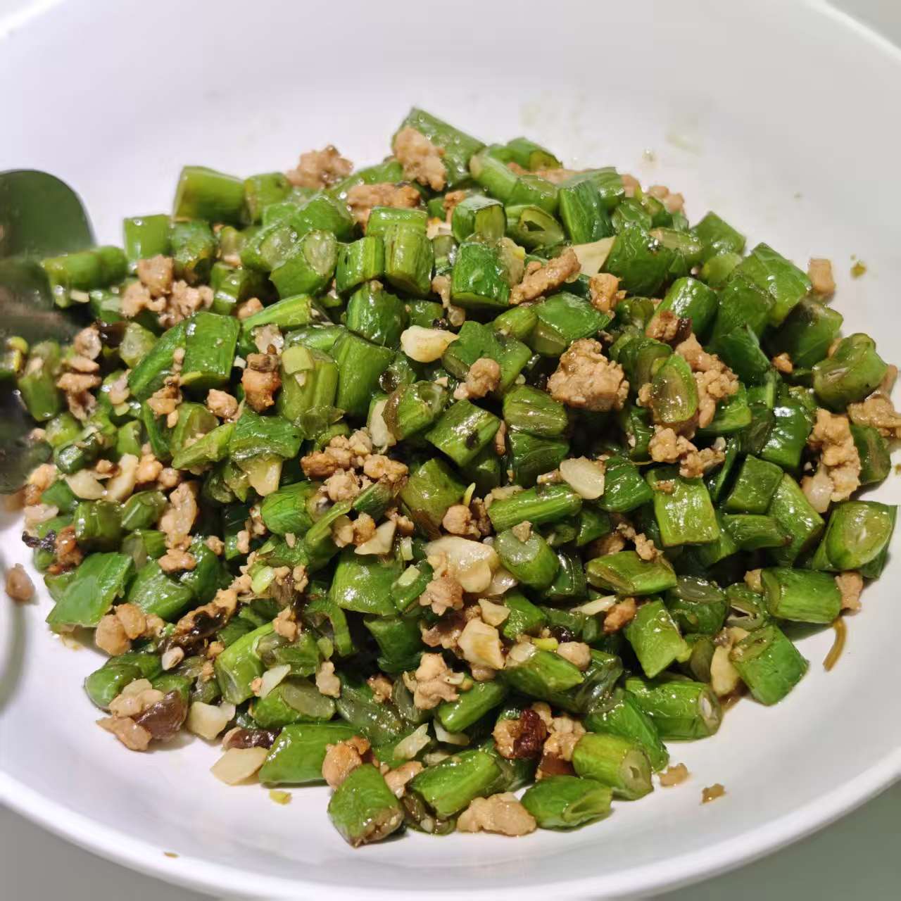 肉末豆角是一道简单又美味的家常菜。豆角富含蛋白质和多种维生素,还含有丰富的膳食纤维,可促进肠道蠕动,帮助消化,预防便秘。将豆角切成小段,猪肉剁成肉末。先将肉末煸炒出油,再放入豆角一起翻炒。期间加入蒜末、小米辣等调料提味,豆角吸收了肉末的油脂和香味,变得软嫩可口,肉末也增添了豆角的清新,每一口都充满了浓郁的香味,十分下饭。