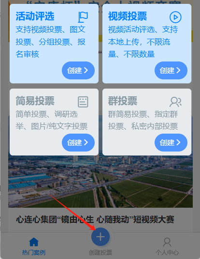 进入小程序后,直接冲首页的【创建投票】按钮,勾选【活动评选】模版创建,不管是图文投票还是视频投票、分组投票、匿名投票统统满足需求,还能不限作品数量及浏览量。