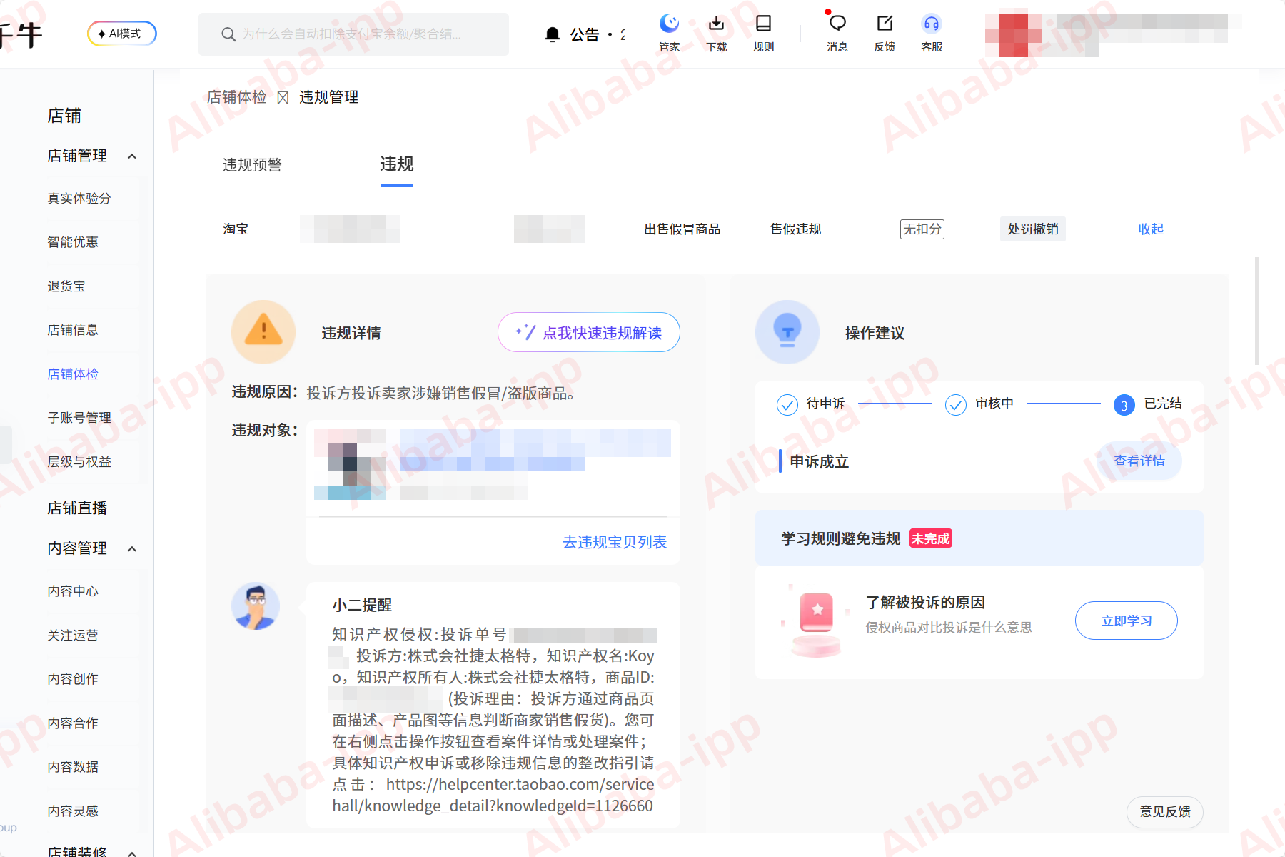 陈先生感到既困惑又冤枉。他店铺里的那几款日本KOYO轴承,仅仅是作为品牌展示上架,一单都还没有成交过。为了省事,链接里的产品图片,也是他从其他同行店铺里复制过来的通用图,自己并未实际采购或销售对应的产品。此刻,面对“售假”这项严厉的指控,他深知后果严重:商品链接面临删除,店铺可能被处以售假处罚、扣分、降权,甚至被扣除保证金。这无疑是“祸从天上来”。