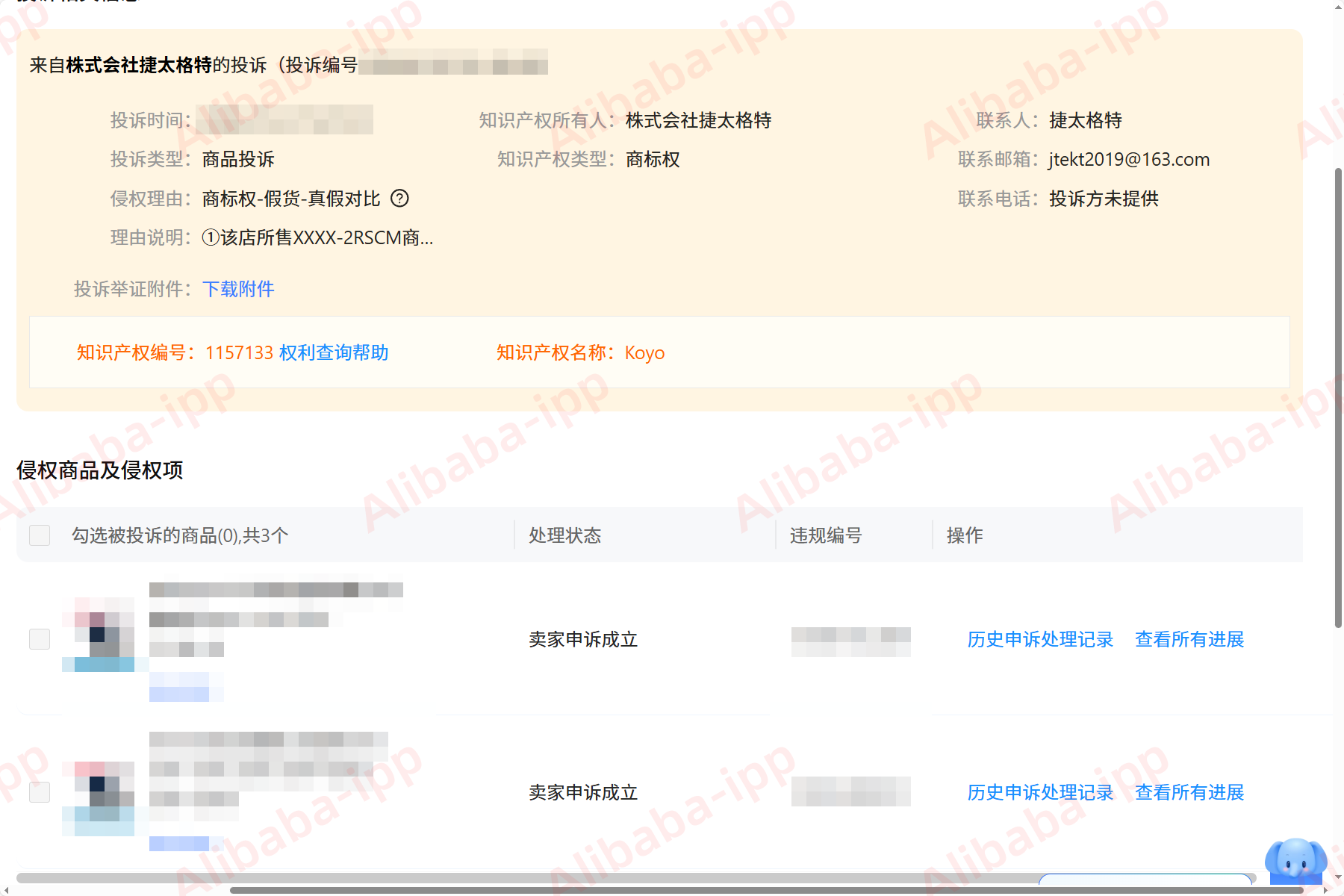 一天,主营各类品牌轴承的淘宝商家陈先生,像往常一样登录店铺后台,一条突如其来的系统消息让他心头一紧。他的店铺收到了来自“株式会社捷太格特”的投诉,投诉编号指向知识产权编号1157133,知识产权名称为“Koyo”。投诉类型赫然写着“商标权-假货-真假对比”。投诉方指控他店铺内销售的KOYO品牌轴承为假货,依据是商品页面描述和产品图片。