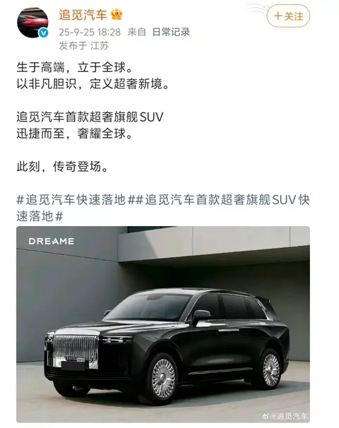 新能源圈又现“迷惑操作”!造扫地机器人起家的追觅刚发布旗舰SUV官图,就被骂上热搜——帕特农神庙进气格栅、对开式“马车门”、悬浮式车顶,连“圣殿红”车漆都和劳斯莱斯库里南一模一样,网友怒怼:“这哪是致敬经典,分明是拿着游标卡尺复刻”。更讽刺的是,追觅还把这波抄袭包装成“豪华平权”,这波操作到底是急于求成还是彻底摆烂?