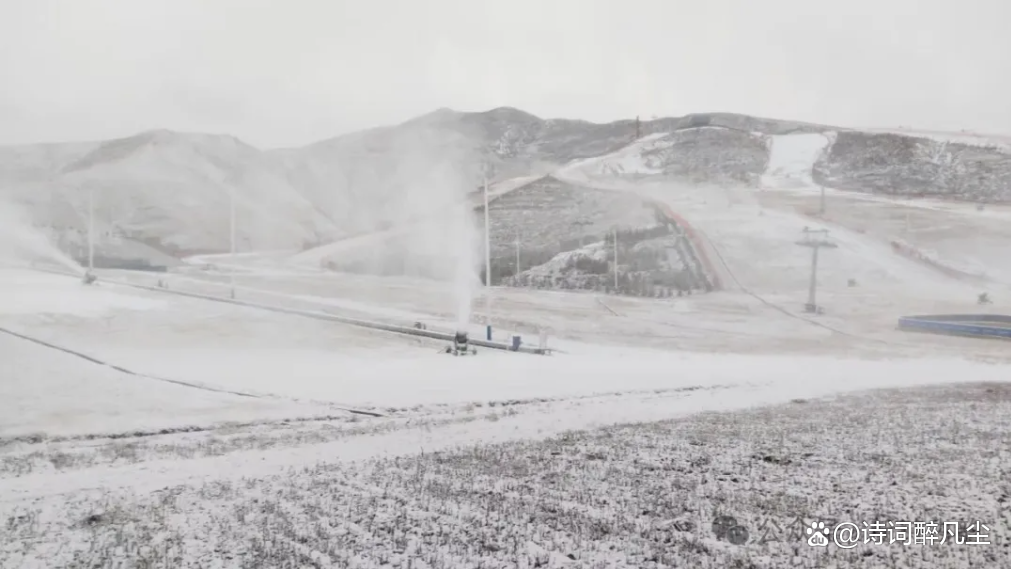 这是2024年时候广武国际滑雪场开始造雪的第三天,那个雪季原本计划11月中开业的,奈何天公不作美,大半个月过去了既不下雪也无法造雪。当看着雪场上那些造雪机火力全开的造雪画面,对滑雪的渴望也上升到了极点。