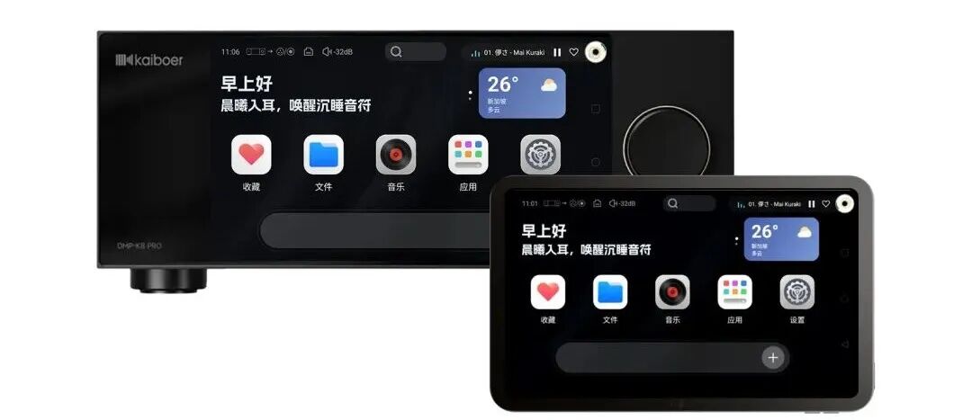 此外,还有HIFI数播圈主流的“遥控器APP”玩法——KAIBOER HOME,诚然,这并非简单的一个移动端遥控器界面,而是可以做到实时同屏操作的多功能遥控中枢,并且支持:PC、MAC、安卓以及IOS的安装,无论居家赏析、商务HIFI演播室、专业录音棚,都能搭配DMP-K8 PRO一起品鉴音乐!对大多数烧友而言,用更熟悉的手机或平板电脑来掌控HIFI生态,再用机身内嵌的双芯ES9039 PRO负责音乐诠释,便捷与音质兼得。