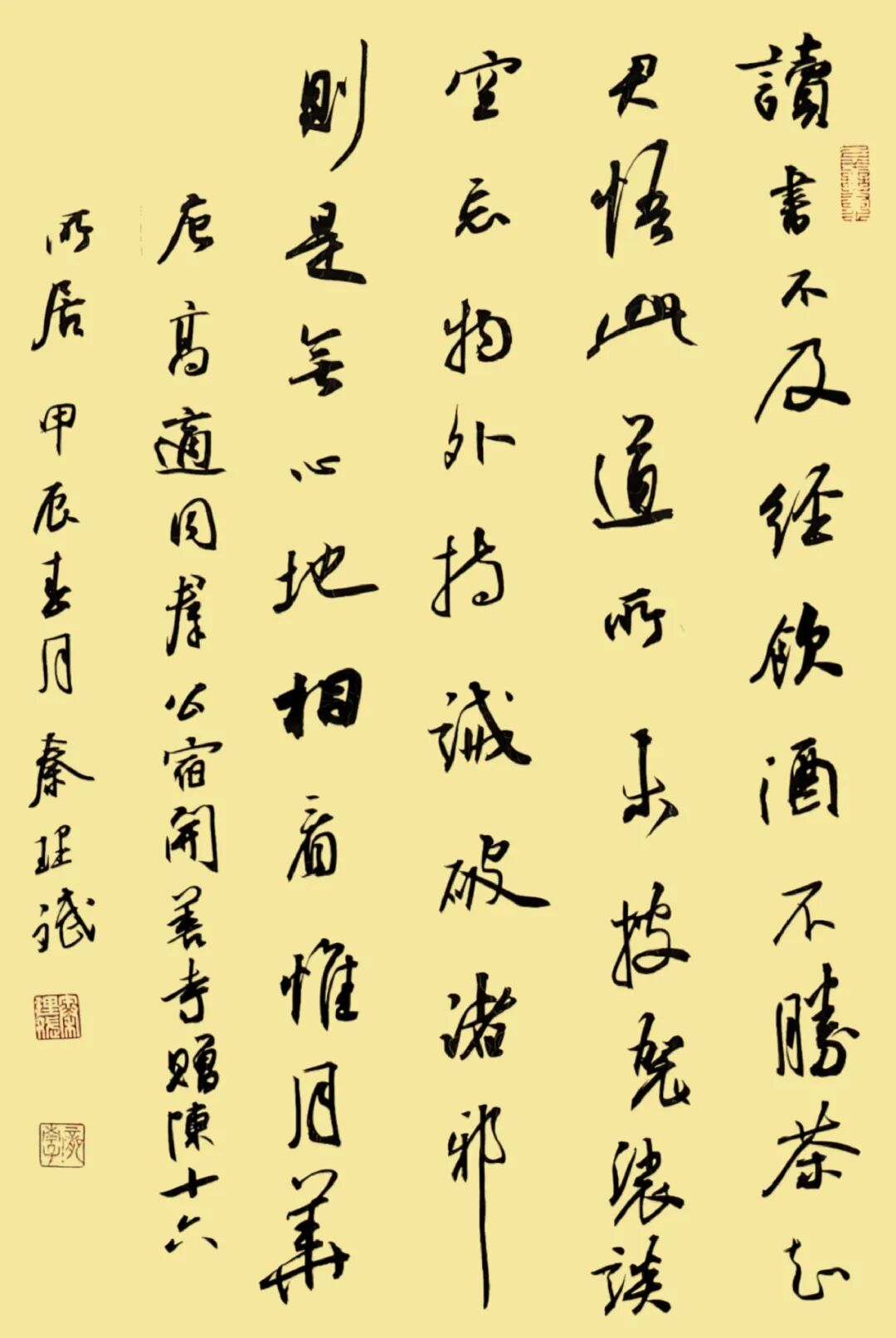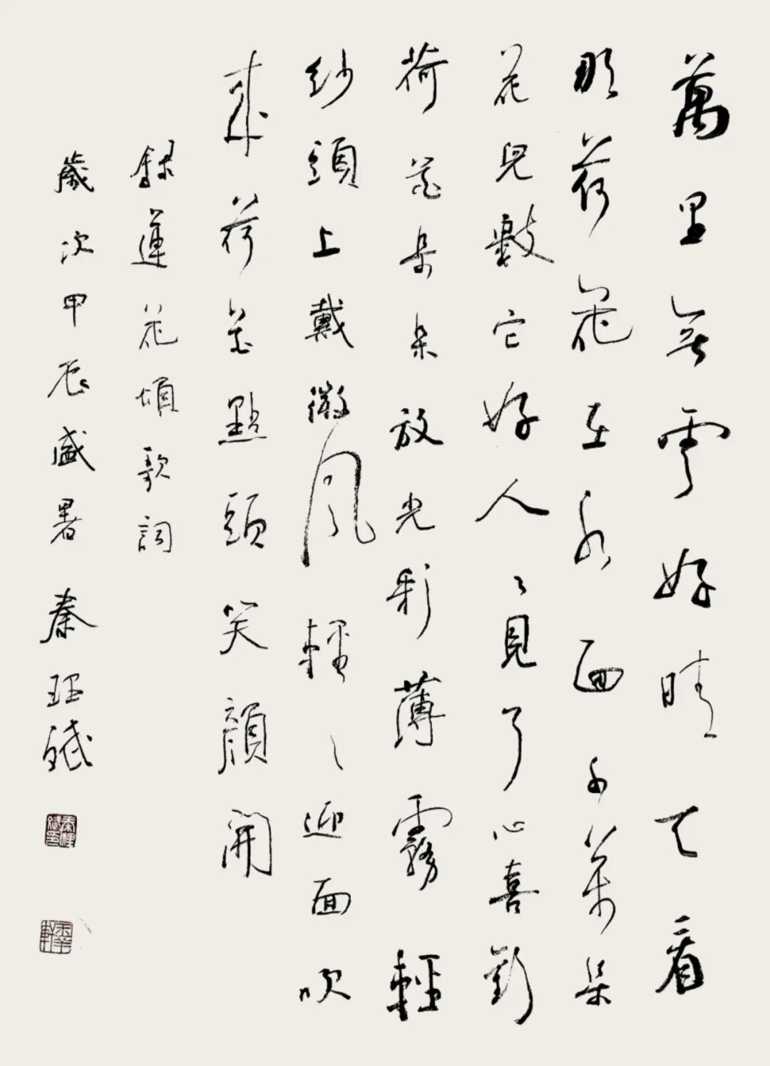1977年兰大毕业后留校深耕书法教学,六十余载笔耕不辍,深耕写意书法,以笔墨传情、以书载道,将践行写意书法作为毕生追求。形成平实简静、清新淡远的书风。作品40余次获国际国内奖项,20余次办个人书展,于2023年在北京举办中国美术馆学术邀请展“诗书成韵——秦理斌行书小品展,4幅作品被中国美术馆永久收藏。2024年6月应邀在西安亮宝楼举办秦缘墨韵.龙舞长安秦理斌书法作品展、11月在兰州甘肃省艺术馆举办黄河流韵.龙舞金城秦理斌书法作品展。