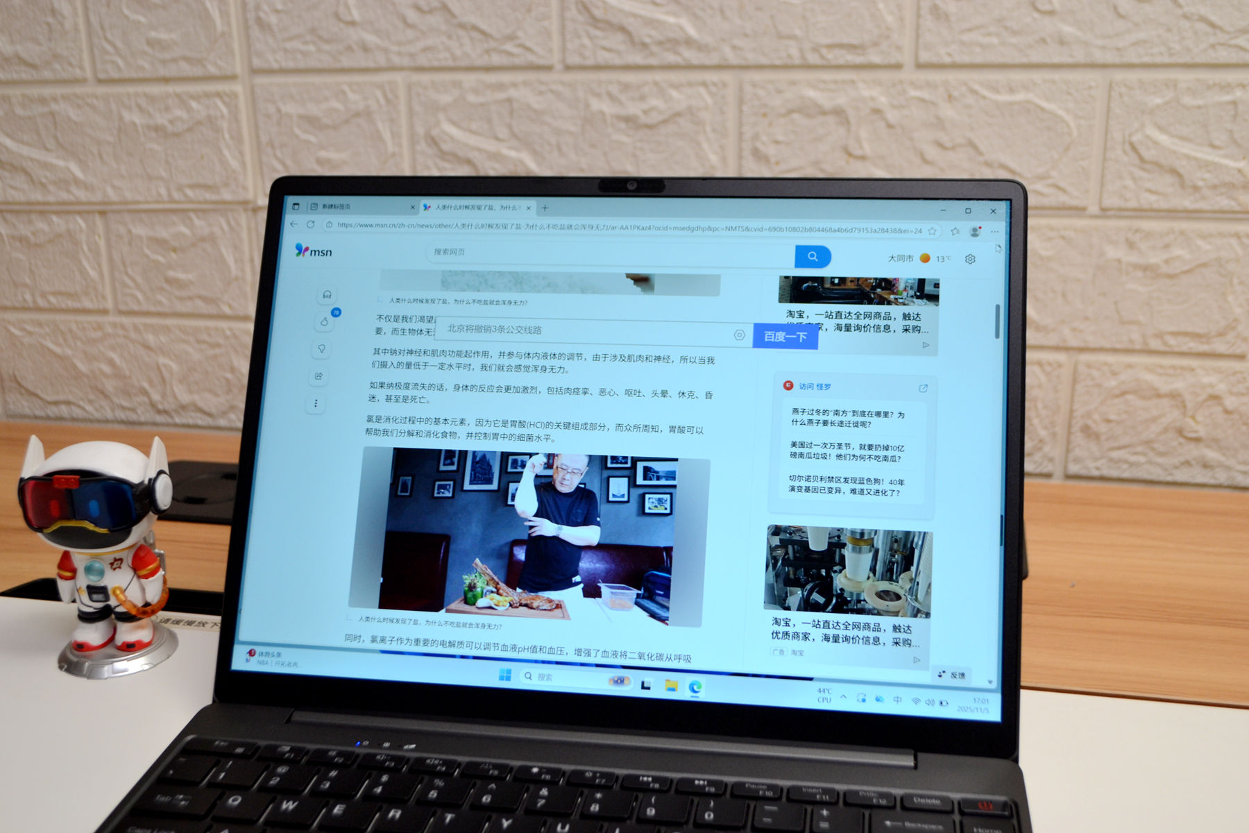 14 英寸 LCD 屏幕,分辨率 2160*1440,算下来 PPI 有 185,文字显示特别细腻,看文字、图片没有一点锯齿感,长时间看屏幕也不觉得眼睛累。而且它用了现在主流旗舰本才有的 3:2 屏幕比例,比传统 16:9 屏幕纵向显示范围大不少,最大的好处是,看浏览器的页面,看Word 文档能多显示 3-4 行,大大提高了办公的效率。