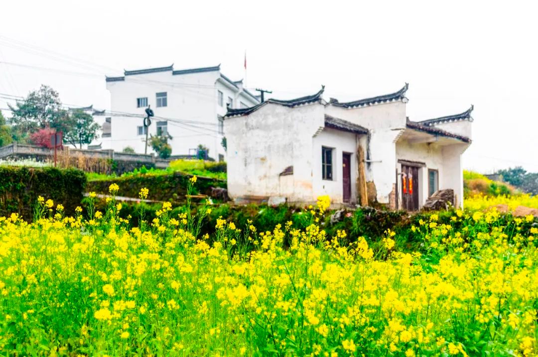 走入村子,黑白分明的徽派古宅,连绵悠远的茶岭,灿烂盛开的油菜花田……宛如一幅水墨画。